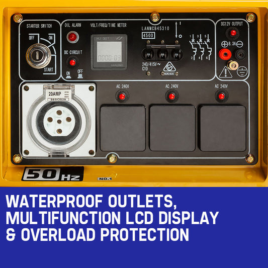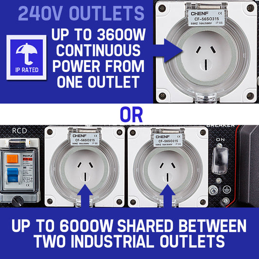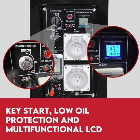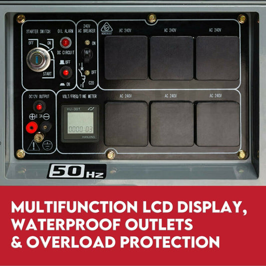 GENPOWER 8.4kW Peak 6kW Rated Single Phase Commercial Diesel Generator, RCD Safety Switch